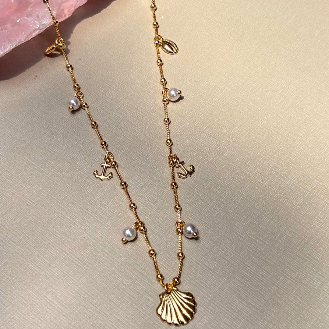 Colar Longo Conchas e Pérolas