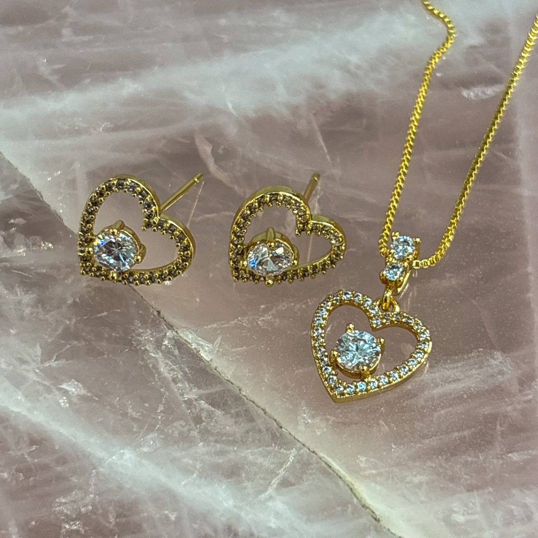 Conjunto Coração Cravejado Vazado e Ponto de Luz