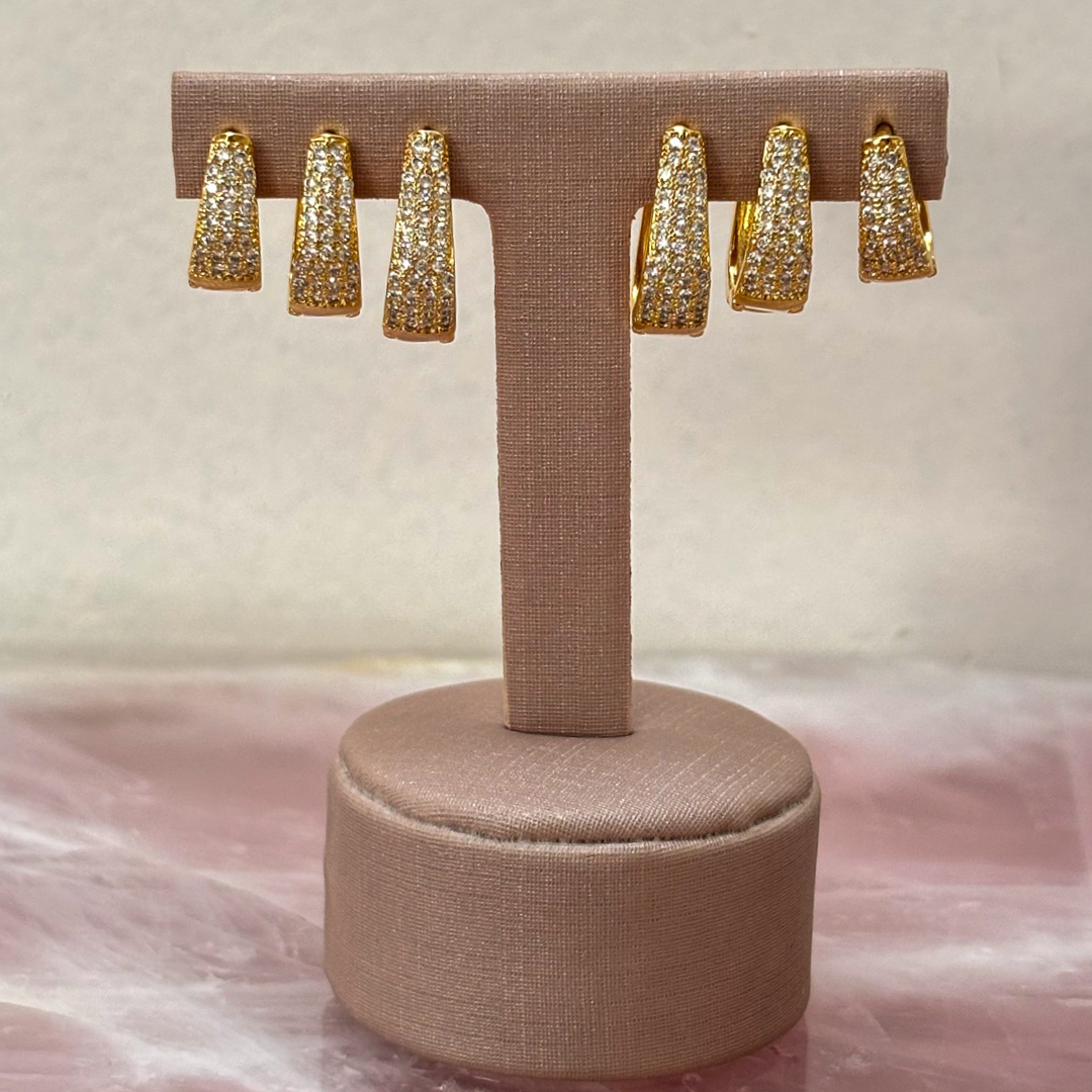 Trio de Argolas Gota Retangular Cravejada