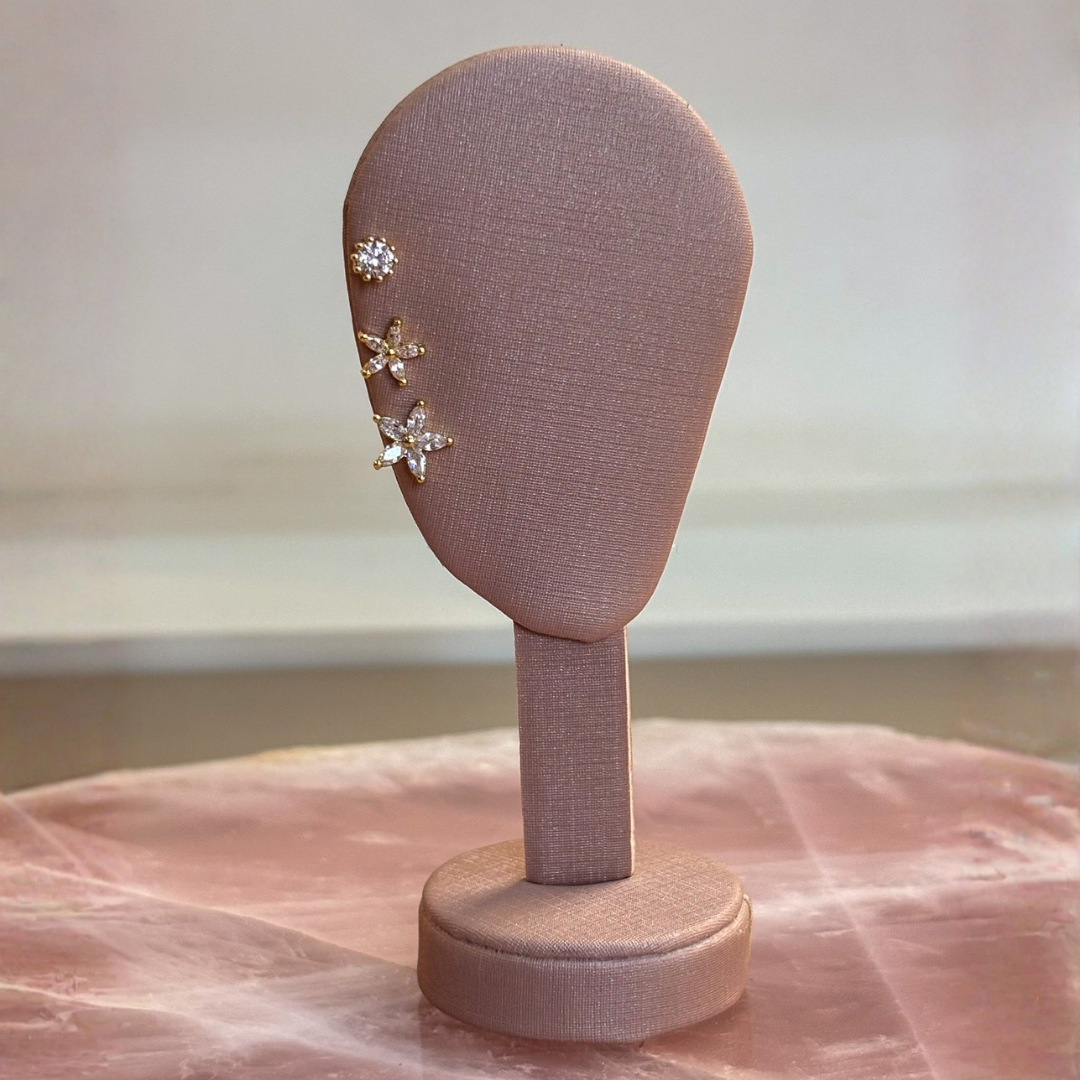 Trio de Brincos 2 Flores e 1 Ponto de luz